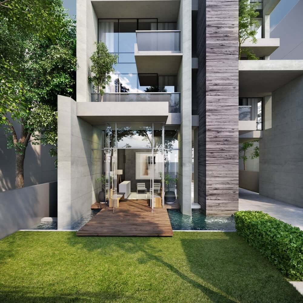 • Landscaping and water features in ground level