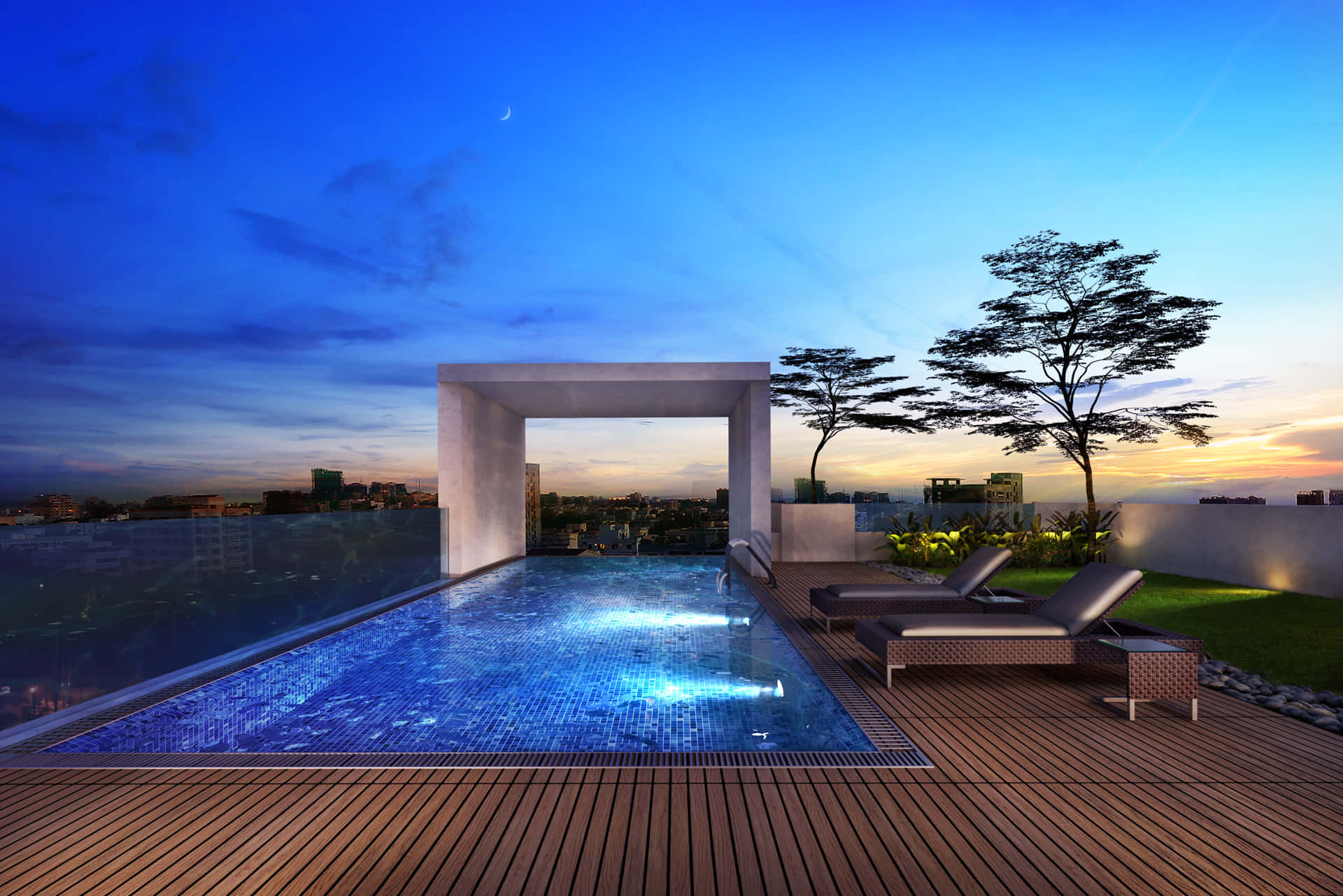 • Rooftop with landscaped gardens and mood lighting